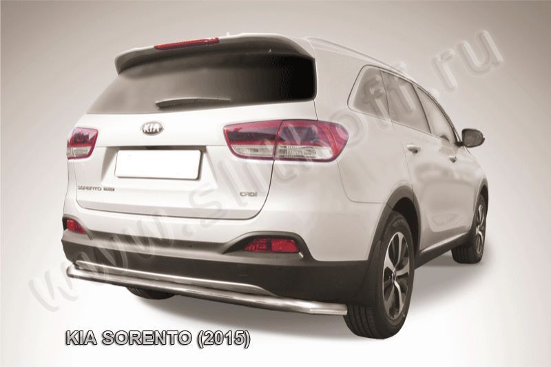 Защита заднего бампера Kia Sorento (2014-2017) состоит из трубы, изготовленной из нержавеющей стали диаметром 57 мм. Надежное крепление к кузову автомобиля. Установка без сверления кузова. Изготовление по предварительному заказу. Гарантия качества!