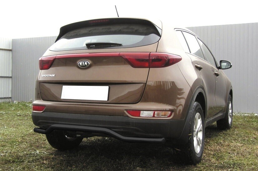 Защита заднего бампера Kia Sportage (2016-2021) состоит из изогнутой трубы, изготовленной из нержавеющей стали диаметром 57 мм. Надежное крепление к кузову автомобиля. Установка без сверления кузова. Цвет окраски: черный. Изготовление по предварительному заказу. Гарантия качества!