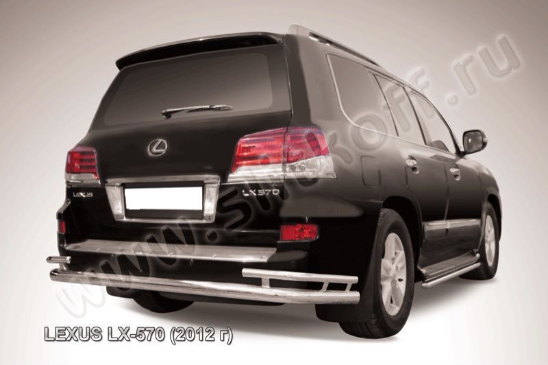 Защита заднего бампера Lexus LX-570 (2012-2015) состоит из 2-х труб, изготовленных из нержавеющей стали диаметрами 76 и 42 мм. Надежное крепление к кузову автомобиля. Установка без сверления кузова. Изготовление по предварительному заказу. Гарантия качества!