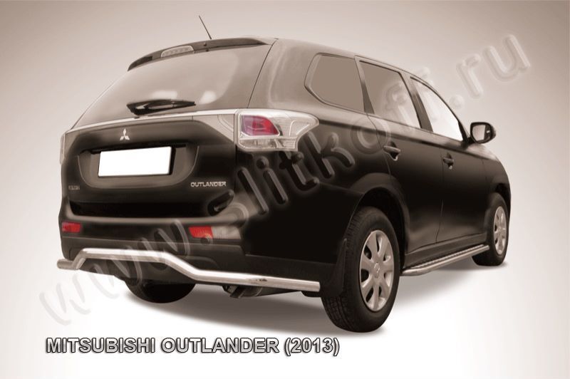 Защита заднего бампера Mitsubishi Mitsubishi Outlander (2012-2015) состоит из изогнутой трубы, изготовленной из нержавеющей стали диаметром 57 мм. Надежное крепление к кузову автомобиля. Установка без сверления кузова. Изготовление по предварительному заказу. Гарантия качества!