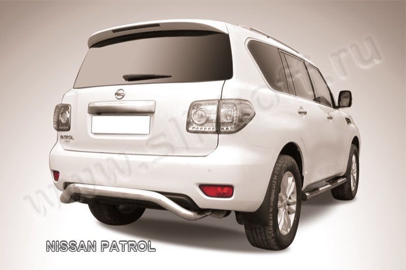 Защита заднего бампера Nissan Patrol (2010-2014) состоит из изогнутой трубы, изготовленной из нержавеющей стали диаметром 76 мм. Надежное крепление к кузову автомобиля. Установка без сверления кузова. Изготовление по предварительному заказу. Гарантия качества!