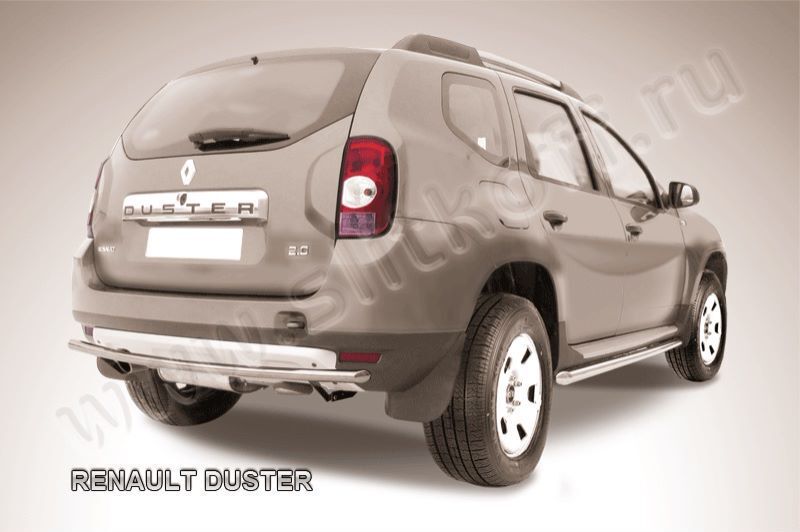 Защита заднего бампера Renault Duster (2010-2015) состоит из трубы, изготовленной из нержавеющей стали диаметром 42 мм. Надежное крепление к кузову автомобиля. Установка без сверления кузова. Изготовление по предварительному заказу. Гарантия качества!
