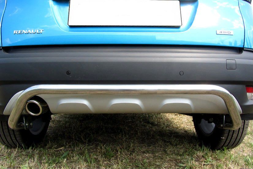 Защита заднего бампера Renault Kaptur 2WD (2012-2019) состоит из изогнутой трубы, изготовленной из нержавеющей стали диаметром 42 мм. Надежное крепление к кузову автомобиля. Установка без сверления кузова. Изготовление по предварительному заказу. Гарантия качества!