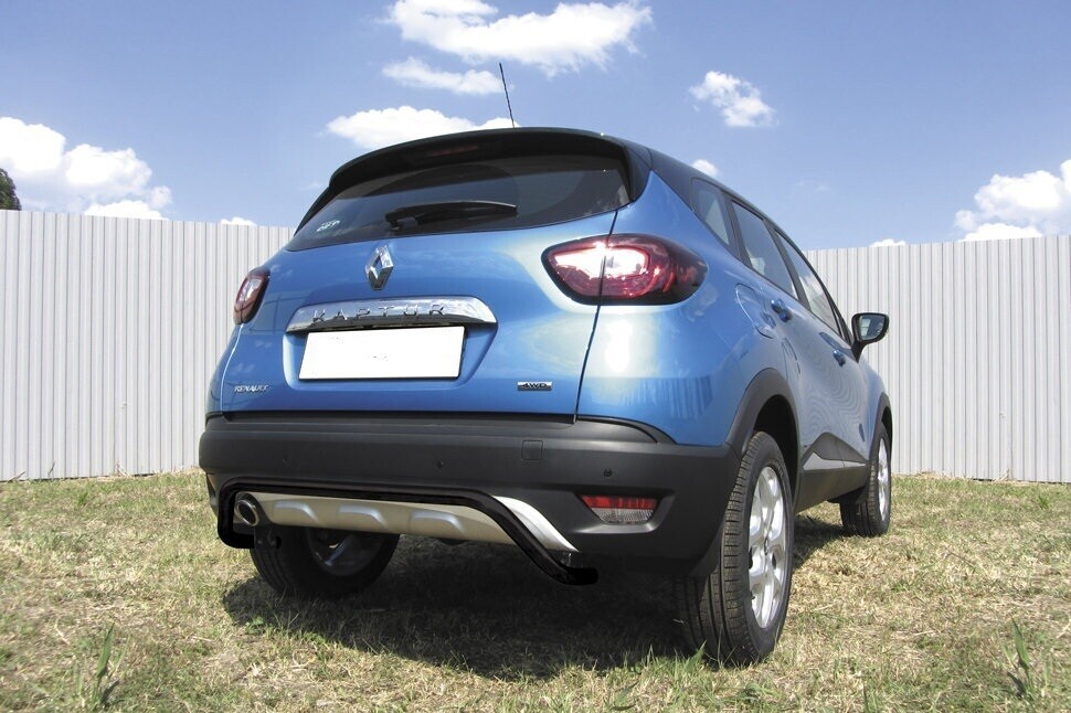 Защита заднего бампера Renault Kaptur 4WD (2012-2019) состоит из изогнутой трубы, изготовленной из нержавеющей стали диаметром 42 мм. Надежное крепление к кузову автомобиля. Установка без сверления кузова. Цвет окраски: черный. Изготовление по предварительному заказу. Гарантия качества!
