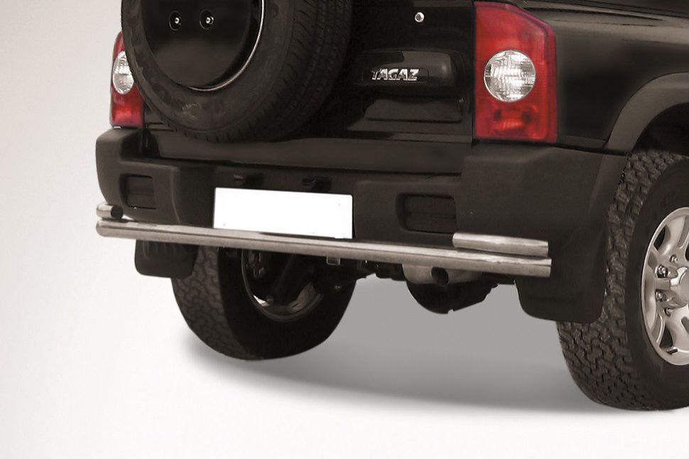 Защита заднего бампера TAGAZ Tager 5дв (2008-2012) состоит из 2-х труб, изготовленных из нержавеющей стали диаметрами 57 и 42 мм. Надежное крепление к кузову автомобиля. Установка без сверления кузова. Изготовление по предварительному заказу. Гарантия качества!