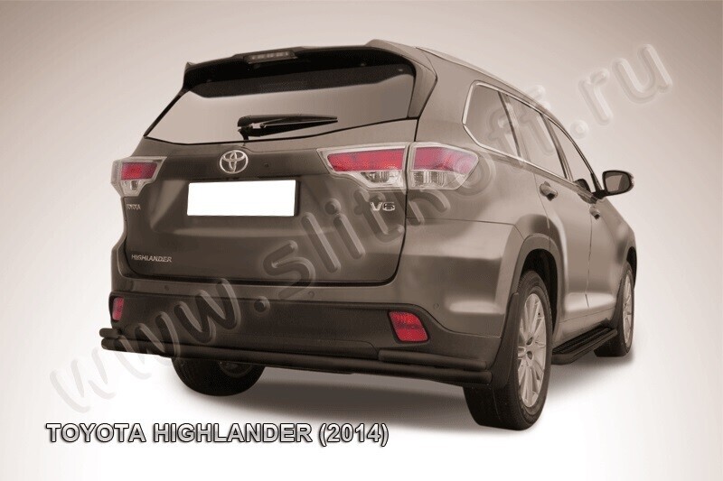 Защита заднего бампера Toyota Highlander (2014-2016) состоит из 2-х труб, изготовленных из нержавеющей стали диаметрами 57 и 42 мм. Надежное крепление к кузову автомобиля. Установка без сверления кузова. Цвет окраски: черный. Изготовление по предварительному заказу. Гарантия качества!
