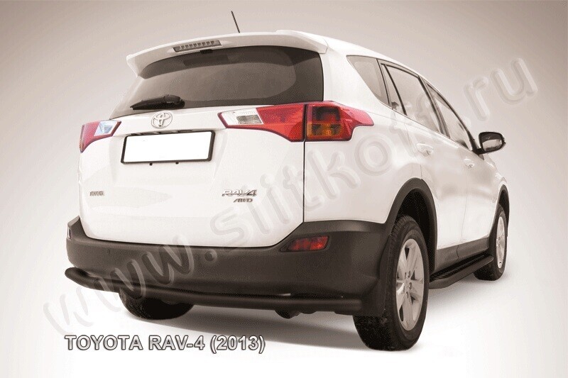 Защита заднего бампера Toyota Rav-4 (2012-2015) состоит из трубы, изготовленной из нержавеющей стали диаметром 57 мм. Надежное крепление к кузову автомобиля. Установка без сверления кузова. Цвет окраски: черный. Изготовление по предварительному заказу. Гарантия качества!
