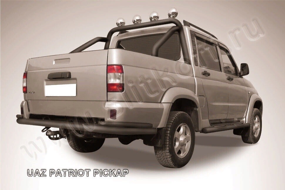 Защита заднего бампера Uaz Pickup (2008-2014) состоит из 2-х труб, изготовленных из нержавеющей стали диаметрами 76 и 42 мм. Надежное крепление к кузову автомобиля. Установка без сверления кузова. Цвет окраски: черный. Изготовление по предварительному заказу. Гарантия качества!